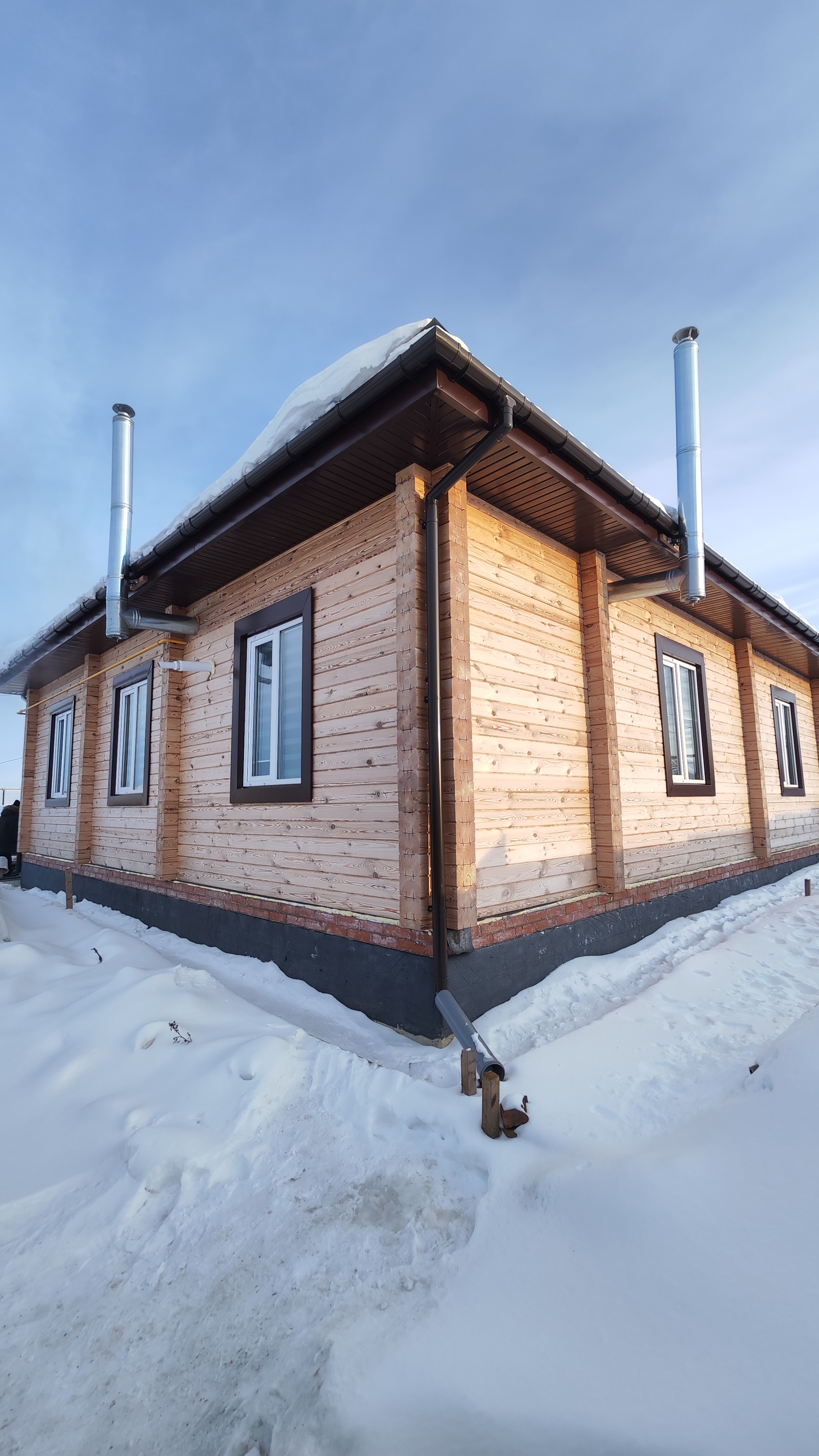 Начали строительство осенью 2024 года с фундамента, сдали дом в апреле 2025 года. Сам дом под крышу построили за 38 дней. Цена под "тёплый контур" вышла за 7.500 млн. Таулык